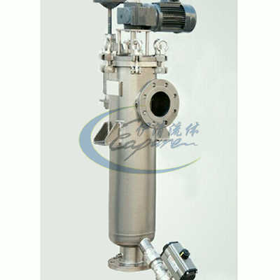 EJS-W-T型外刮刀式过滤器:底部直排渣;适合小流量、高精度过滤;结构紧凑,过滤流程连贯,被机械清理的滤液杂质,自由落体至底部收集腔由排污口排出,排出残液备有回收系统处理或直接排放;